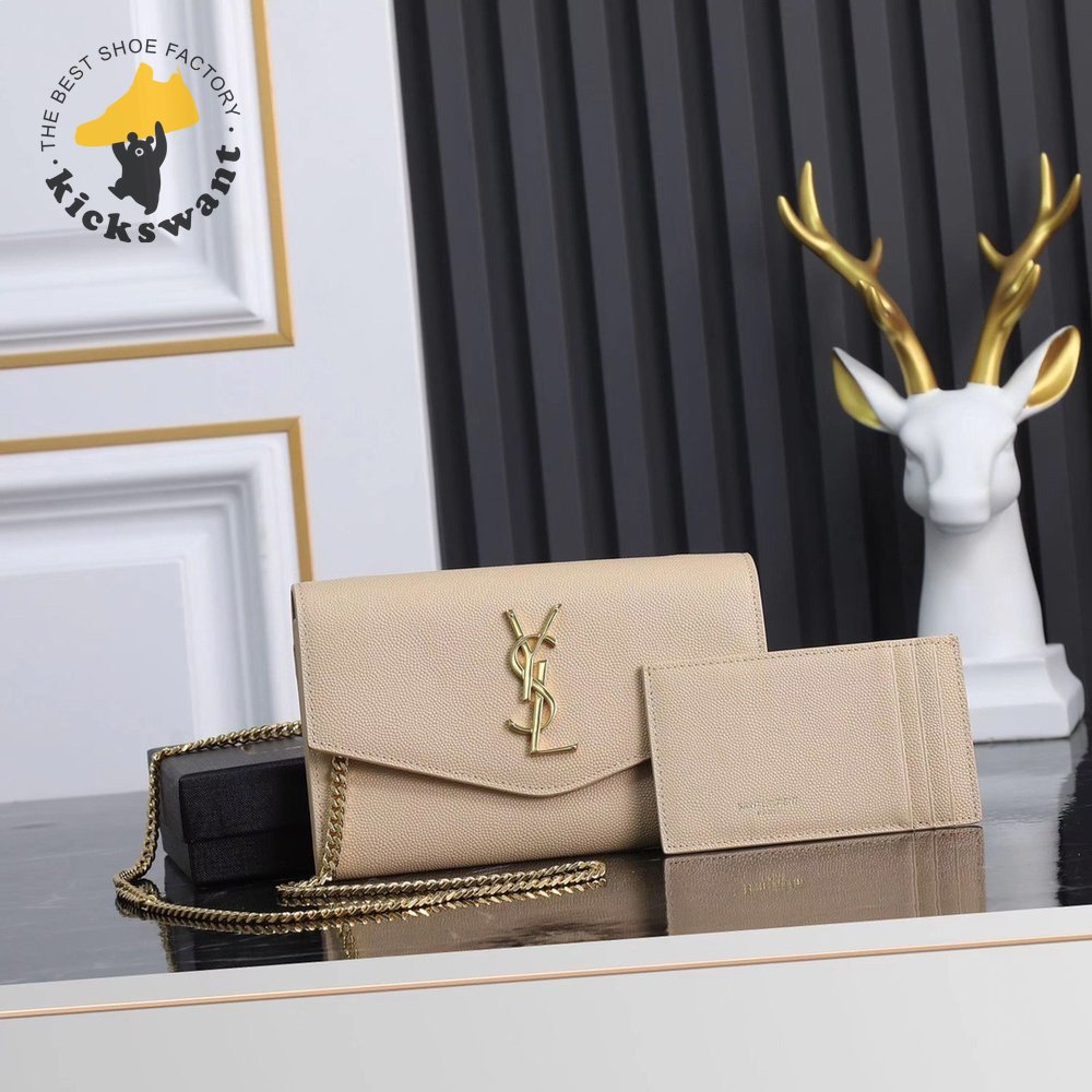 Saint Laurent Uptown Chain Wallet Grain De Poudre Dark Beige