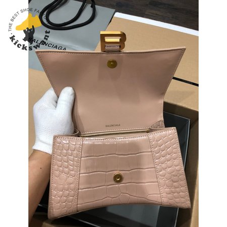 Balenciaga Hourglass Small Handbag Crocodile Embossed In Nude 6310
