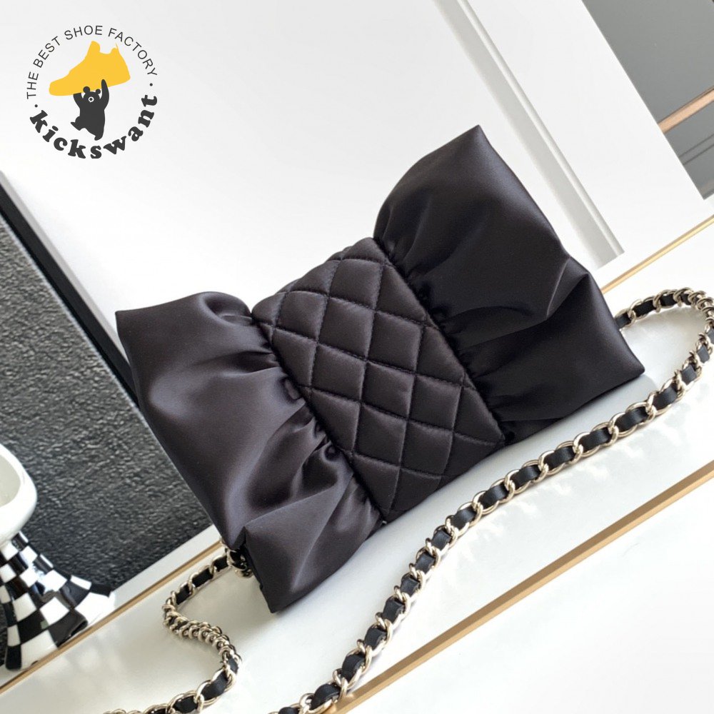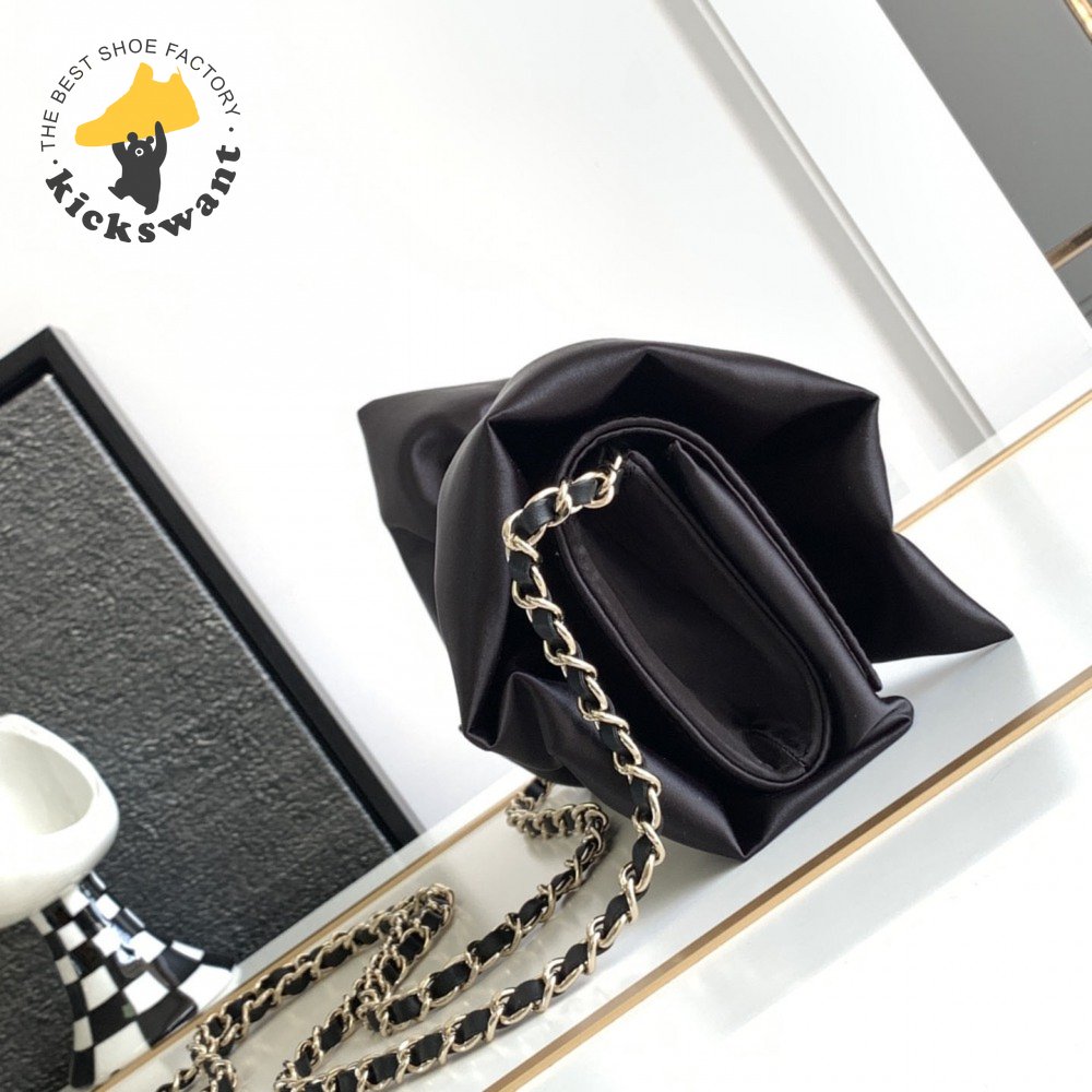 Chanel Clutch Satin & Gold-Tone Metal Black
