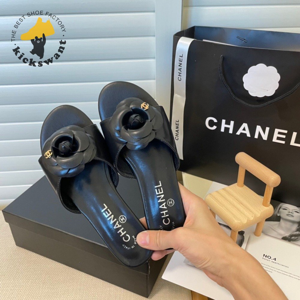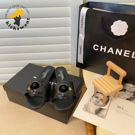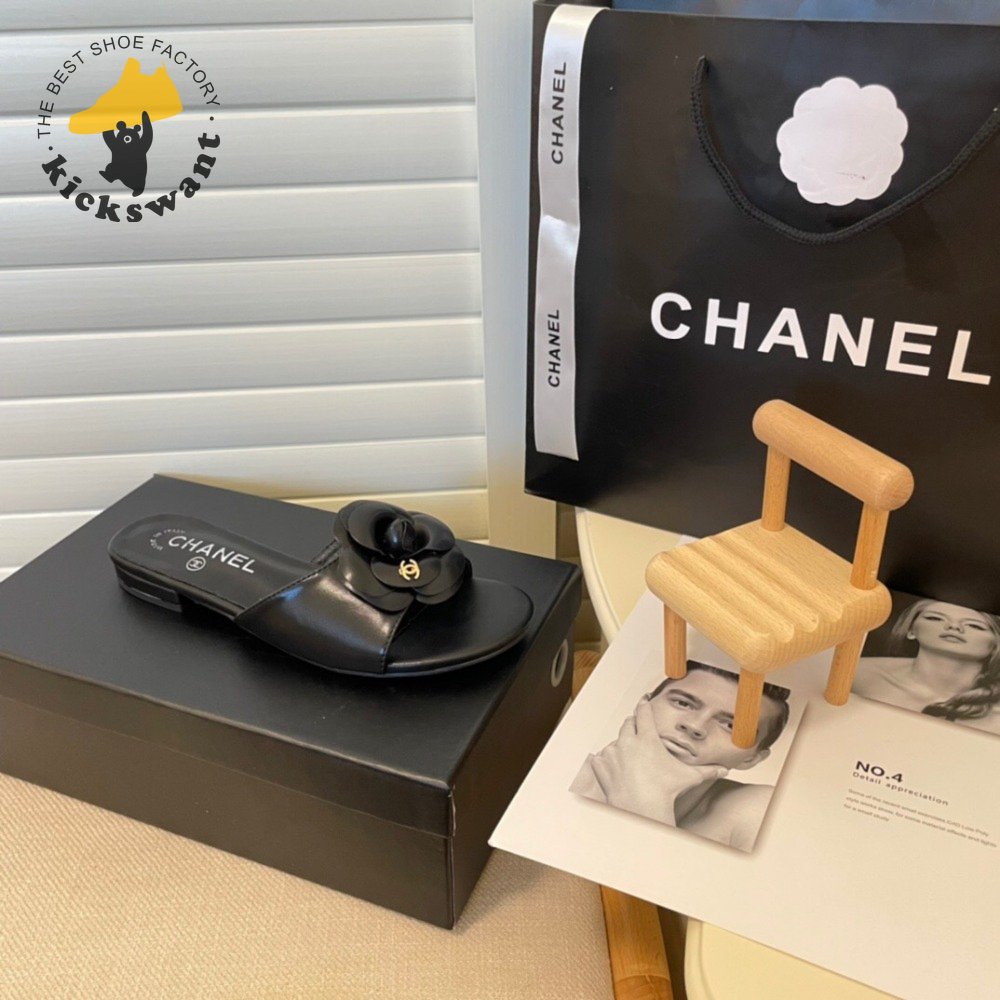 Chanel Slippers Camellia Black 35-40