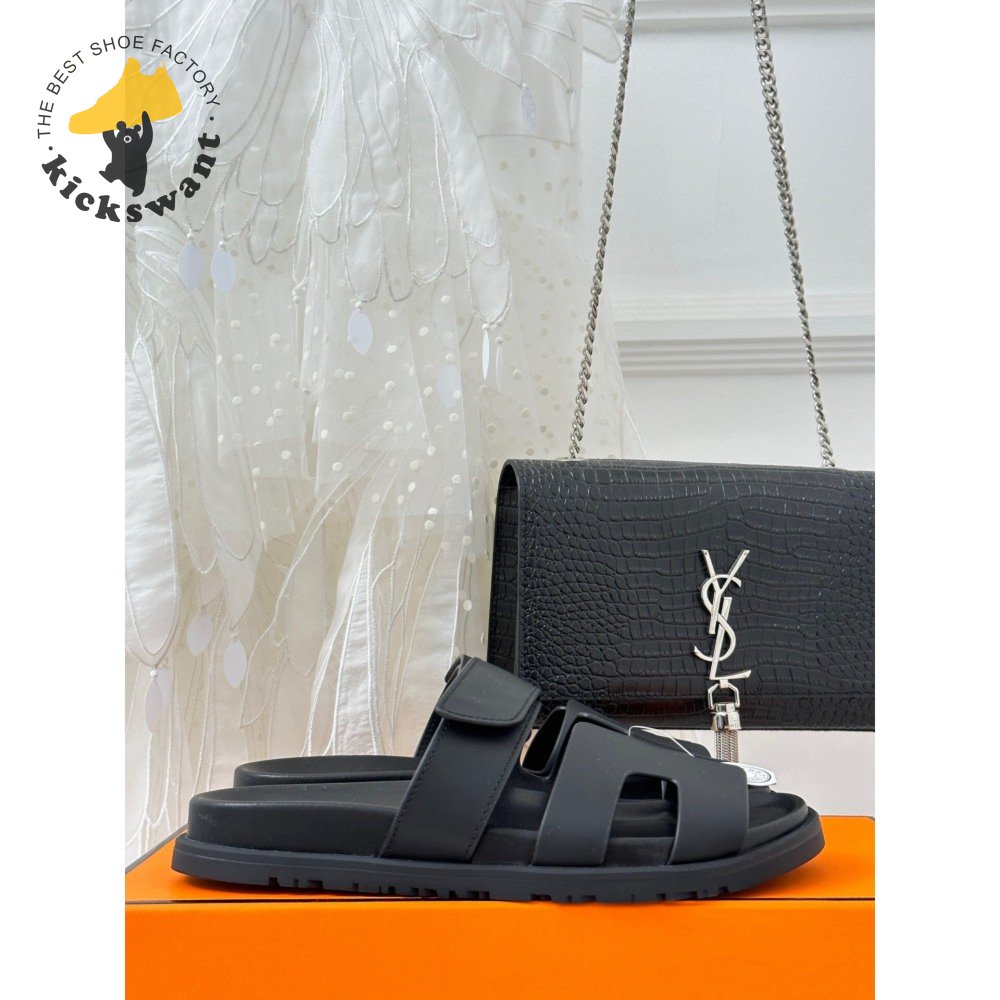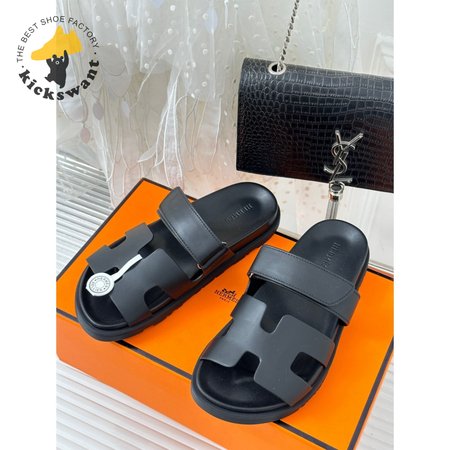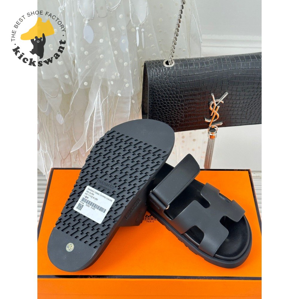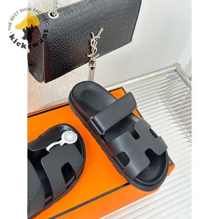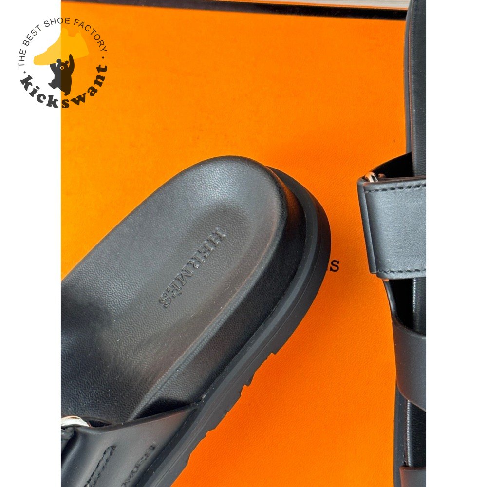 Hermes Chypre Sandal Noir Calfskin Leather