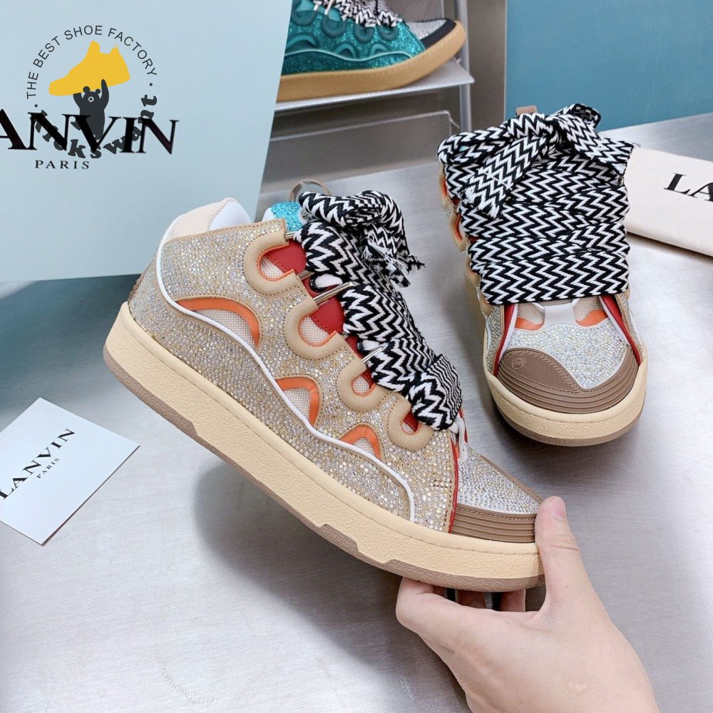 LANVIN Curb sneakers in Leather and strass beige STRA-H2105 Size 35-45
